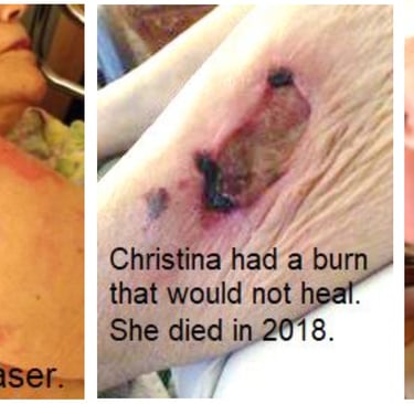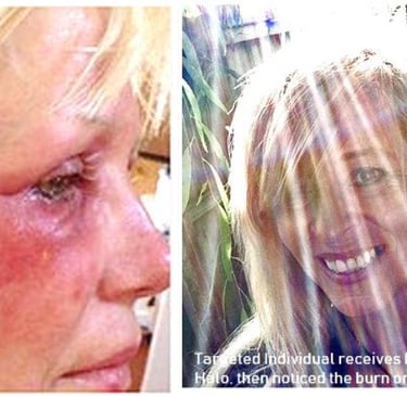 NOTICE THE HORIZONTAL LINES. THEY ARE ACTUALLY CIRCULAR - JUST LIKE THE HALO AROUND THE LADY IN THE PICTURE IN THE HEADER. THE BEAM SURROUNDING OUR POSTER TI WAS ACTUALLY SURROUNDING HER. She didn't know what was happening so she was smiling and taking a selfie. Then she saw the burn on her back. The heat evidently stayed in her skin and kept burning until it burned her whole back. If you do have a microwave incident, put ice on it to stop the heat from continuing to heat more area.