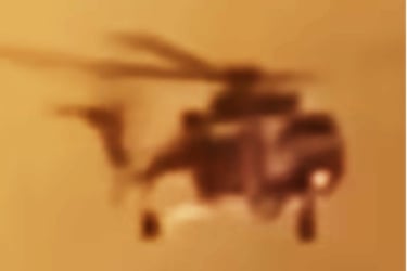 First and Second Images (Blurry Silhouettes on Orange Background): These seem to show the same or similar helicopter in low visibility (possibly dusk, smoke, or fog), captured as a dark outline against a hazy sky. The shape suggests a large, heavy-lift rotary-wing aircraft with tandem rotors (one main rotor and a tail rotor), landing gear visible, and a bulky fuselage. This matches the profile of a CH-53E Super Stallion (or similar Sikorsky heavy-lift variants used by the U.S. Marines). The orange hue could indicate firelight reflection or sunset during the wildfires. No clear markings, tail numbers, or payloads are discernible due to blur. If this was taken by a witness in Lahaina on August 8, 2023, it aligns with your claim of a "Stallion," but the low resolution makes it hard to rule out a misidentified CH-47 Chinook (which has a similar tandem-rotor look but is Army/National Guard and was confirmed in the area for firefighting starting August 9).@USNationalGuard@USArmy [There is no resemblance to a Chinook.]