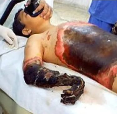 The Highway of Death is Highway 80 linking Kuwait and Basra, Iraq. During the 1991 Gulf War, on the night of 26-27 February 1991, the US Air Force and its allies conducted massive air raids on two roads destroying thousands of vehicles including cars and armored vehicles killing Iraqi soldiers and civilians, even civilians who were peacefully fleeing the slaughter had stopped at checkpoints. They were turned away and then fired on with the HMMWV's. This was the first time they were used in a war. There were groups of people sitting in cars killed with only their heads burned. That would have been caused by the beam of the HELON laser. Many turned up in local hospitals and the doctors could not imagine what kind of weapon had burned them. The doctors speak in the above video. Click on the picture of the Zeus-HLONS above. There is the testimony of the doctors who did not know how to treat these patients. They had never seen any injuries like these. Deaths amounted to ~5,000-10,000+.