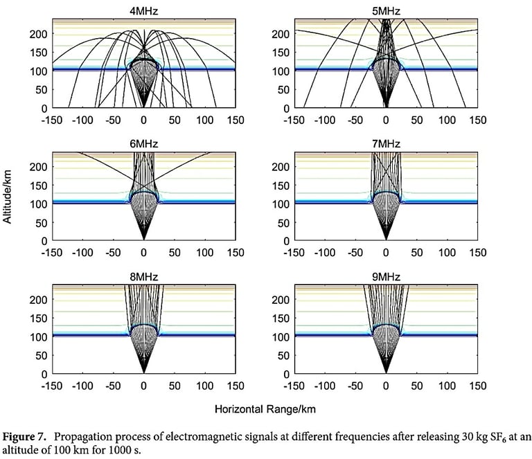 In addition to heating the ionosphere with electromagnetic waves, they use chemicals such as SF6 to create holes which, as a greenhouse gas, contributes to global warming in a similar way to carbon dioxide (CO2), though it’s much more potent than CO2. Its concentration in Earth's troposphere reached 12.06 parts per trillion (ppt) in February 2025, rising at 0.4 ppt/year, but by displacing oxygen in the lungs, it also carries the risk of asphyxia if too much is inhaled. ·As a result of its inertness, SF6 has an atmospheric lifetime between 800- 3,200 years, and no significant environmental sinks other than the ocean. Waveguides in high-power microwave systems are pressurized with it. The gas electrically insulates the waveguide, preventing internal arcing.