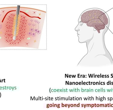 We are developing nano-devices using meta-materials that can non-invasively and remotely monitor and modulate our biological system. The requirements of the system are: 1> they should be as small as possible such that the volume displacement of tissue due to the placement of the device is minimal, 2> They should be untethered/wireless such that they can be remotely controlled. Such a device will sense the biological environment and send the information to a system outside the body in real time. The device will also have the capability to do internal analysis of the sensed data and depending on the analysis results, take further action such as electrical stimulation or drug delivery. The device will harvest energy from external applied fields for its functioning and also modulate the external fields for communicating sensed data.