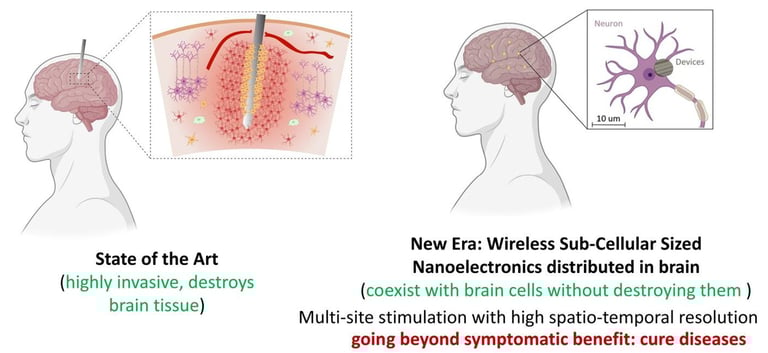 The possibilities with such bioelectronic devices are endless, and we are exploring, among others, brain activity recording at a large scale with a precision of single neuron, activity recording in spinal cord and peripheral nervous system, monitoring tumor microenvironment, observing response to pathology development or external stimulus at a single cell level along with integrated functionalities such as stimulation and drug delivery.
