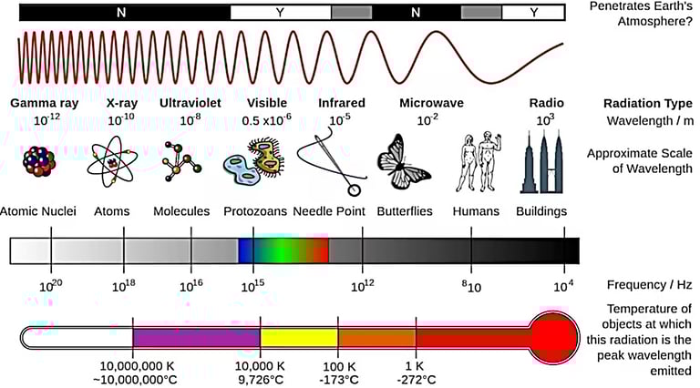 Figure 1. Depiction of daily commercial and household radiation sources with corresponding operational frequency ranges.