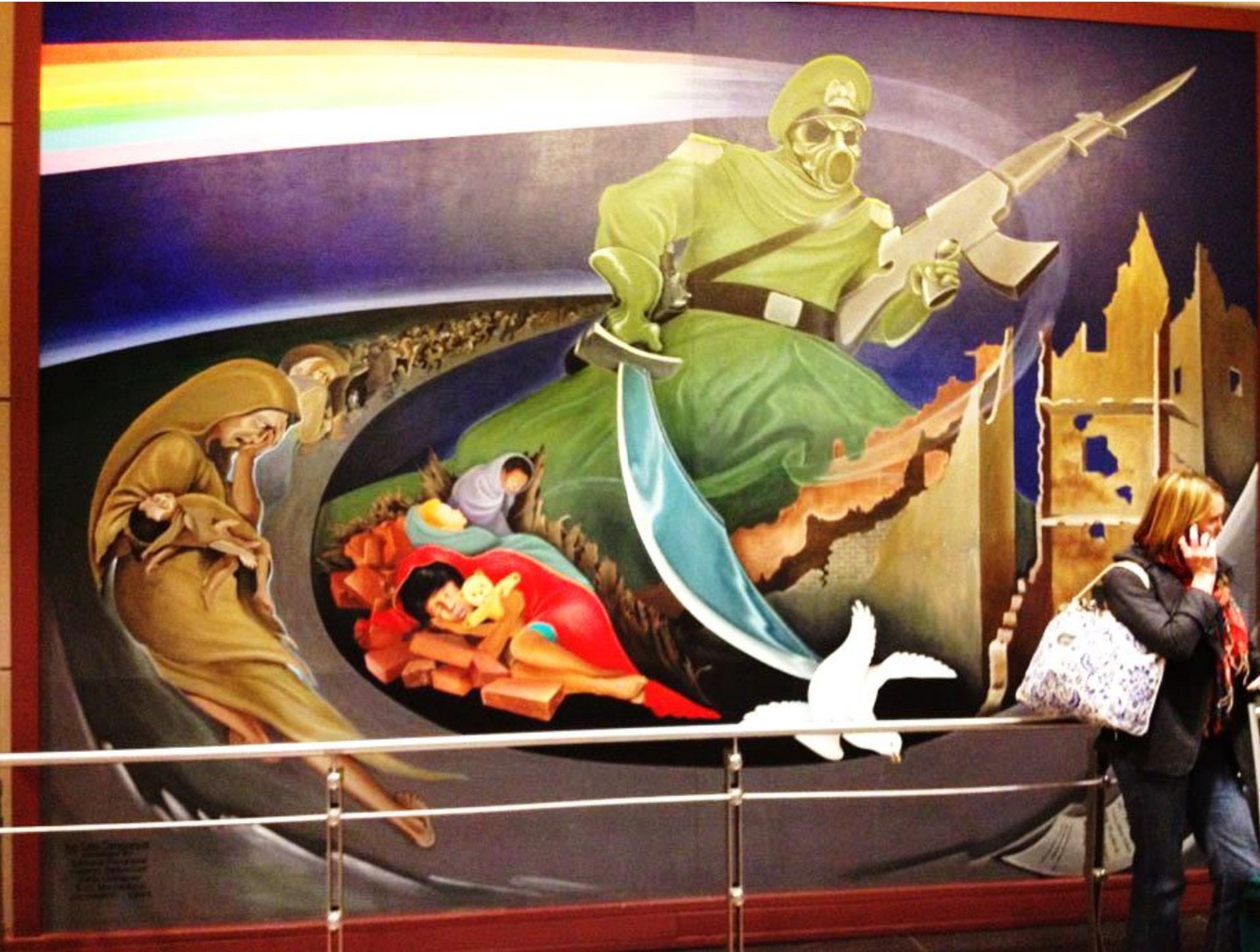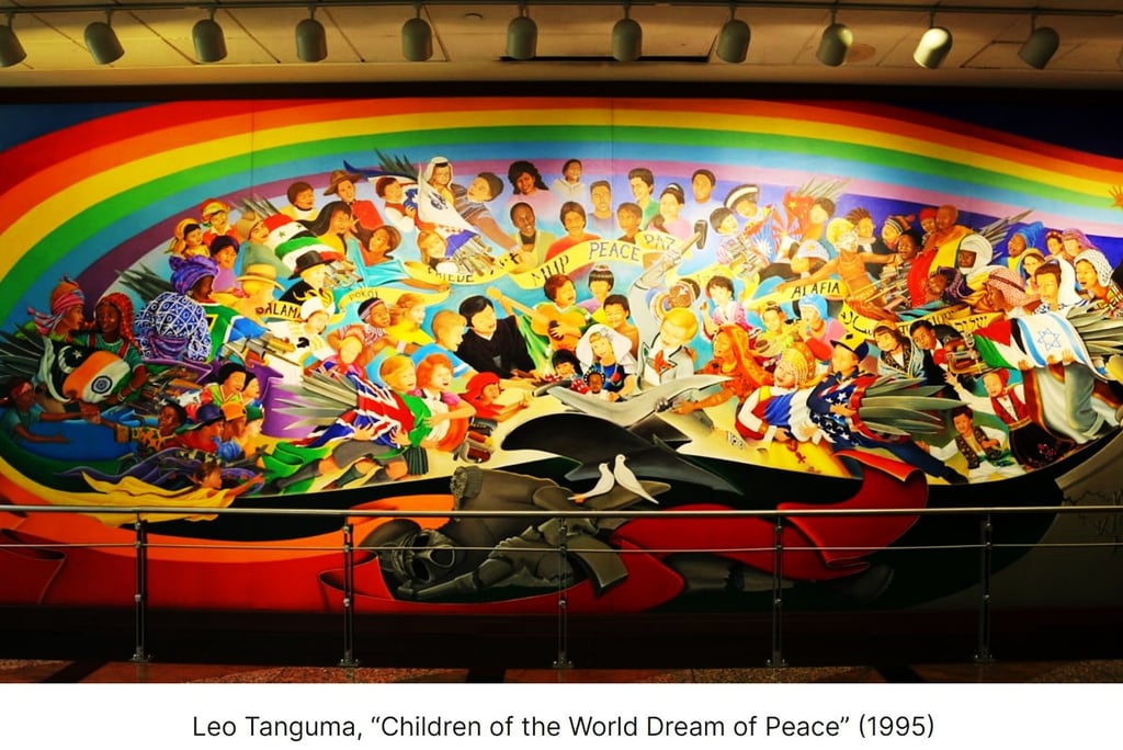 Analysis of the data available makes me reach at least one conclusion: this gigantic structure will eventually become much more than a regular commercial airport. It has the capacity to handle a huge amount of people and vehicles, leading observers to think that the structure might be used as a military base and others even add that it will be used as a civilian concentration camp in the near future. I will not advance on this subject because I do not have proof of those claims. I, however, would understand why such plans would be top secret. Let’s look at the soothing, traveler-friendly art on display at the DIA.