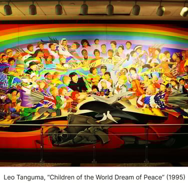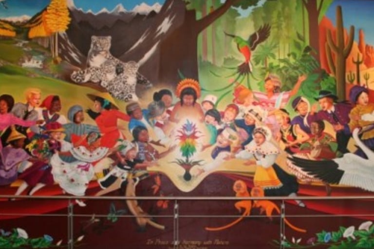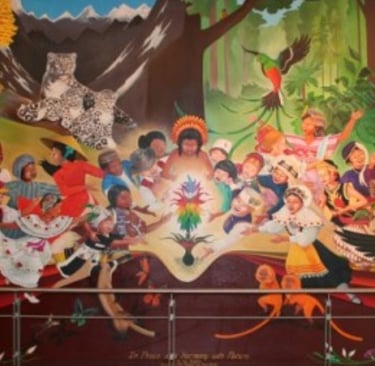 The seriousness of this plan is illustrated by the 7 pictures by artist Leo Tanguma at the Denver Airport. They illustrate a soldier slaughtering many of the earth's inhabitants, the earth with many people, the children of the world giving up their means of protection, namely their weapons. The last picture depicts a much smaller population of children with happy faces and the resources of the world restored for their benefit.