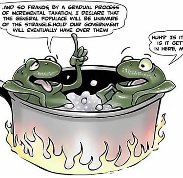 The Boiling Frog is a “slippery slope” metaphor similar to Camel’s Nose.