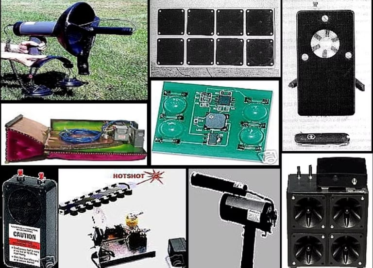 The object above is a murder weapon. It shoots microwave. It is a hand-held directed energy device which can be pointed at an individual to cause them pain or discomfort from a distance. The rectangular "horn" at the left of the picture is an antenna through which the microwave passes.